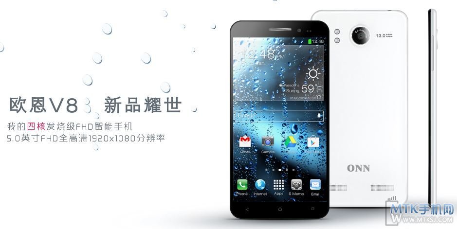 Le specifiche rivelano un display da 5 pollici OGS e IPS con risoluzione FULLHD 1920 x 1080 (441 PPI), doppia fotocamera da 13 megapixel posteriore e 3 frontale con doppio flash led, processore quad-core MT6589T da 1.5Ghz, 1GB di RAM, 16GB di memoria interna espandibile con microSD fino a 32GB, batteria da 2200mAh, Android 4.2 e supporto dual SIM.
