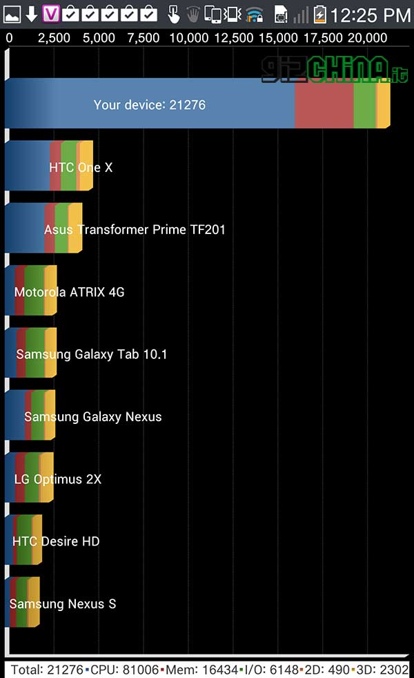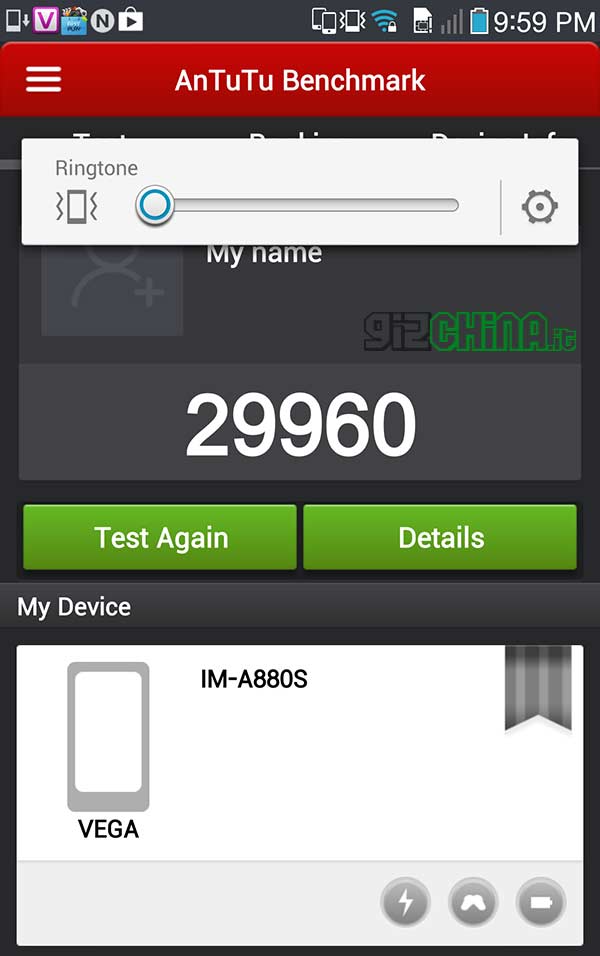 Il risultato del test Antutu è un punteggio incredibile di 29960 punti che se paragonato, come nello screenshot di seguito e nel video linkato, a quelli del Samsung Galaxy S4, Sony Xperia Z, Oppo Find 5, Meizu MX2 e Lenovo K900, rappresenta, seppur solo in termini numerici, tutta la superiorità del Pantech Vega A880S rispetto agli altri terminali.