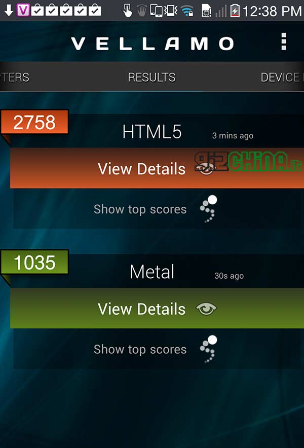 Le eccellenti performance del Pantech A880s sono confermate anche dai due test Vellamo, HTML5 e METAL, nei quali, rispettivamente, ha ottenuto un punteggio di 2758 e 1035!