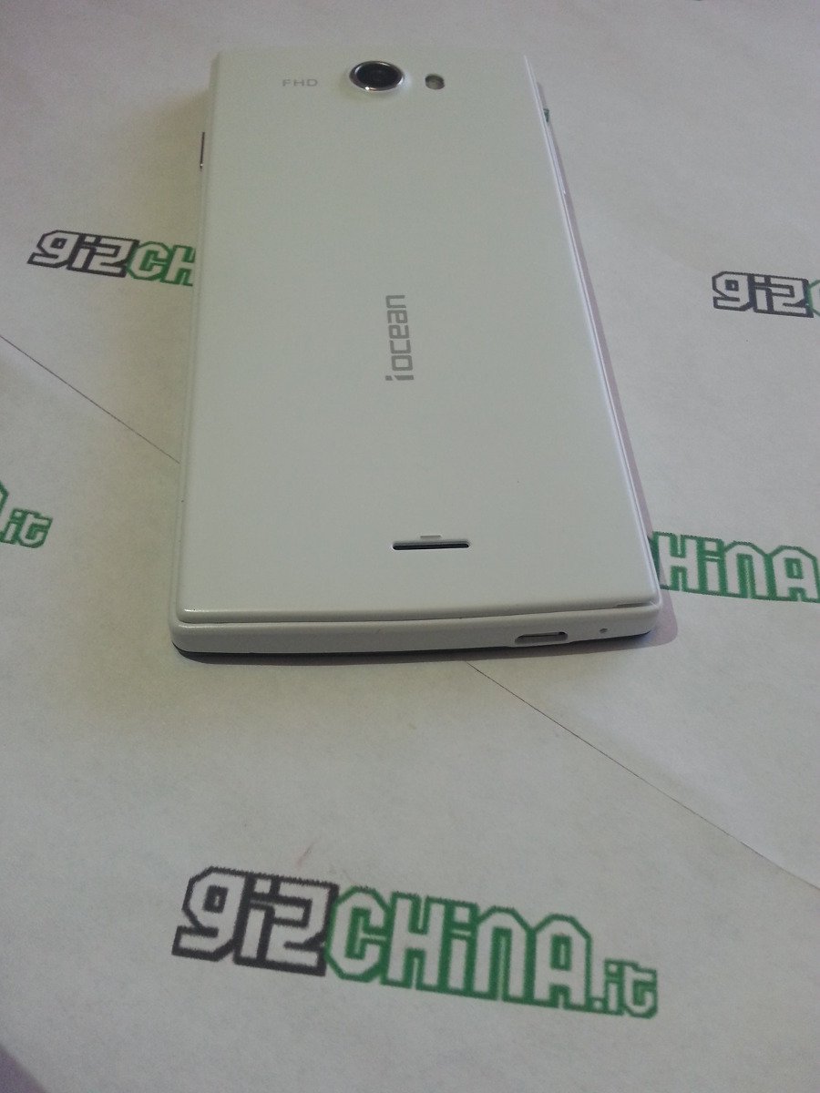 Abbiamo accennato in precedenza della somiglianza dell’iOcean X7 Elite con l’Oppo FIND 5. Andando oltre questa presunta similitudine, possiamo dire che le linee dell’iOcean X7 Elite sono molto eleganti e originali e sicuramente diverse dalla maggior parte dei telefoni cinesi attualmente in commercio. Il contrasto tra bianco della parte posteriore e il nero del vetro/display non è così stridente come si potrebbe immaginare. I due colori si uniscono perfettamente nelle linee un po’ squadrate del telefono. Come già accennato, lo spessore ridotto dell’iOcean X7 Elite sembrerebbe facilitare anche l’utilizzo con una sola mano, il che sicuramente non è male per un telefono con display da 5 pollici!