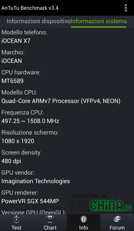 I risultati del test eseguito con Quadrant ci mostrano, invece, che il display da 5 pollici FULLHD dell’iOcean X7 Elite, con risoluzione 1920 x 1080, può godere di ben 480DPI e un refresh rate da 51.01 Hz. Di seguito riportiamo nel dettaglio le