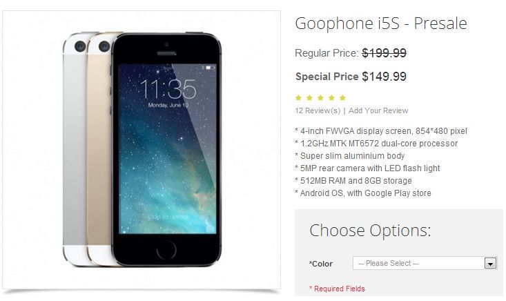 Uno delle più note e popolari aziende produttrici di cloni, GooPhone, ha ufficialmente iniziato la prevendita del suo GooPhone i5S, per soli 149$ (circa 110€). Il GooPhone i5S è un clone di un celebre smartphone non appartenente al mondo Android.