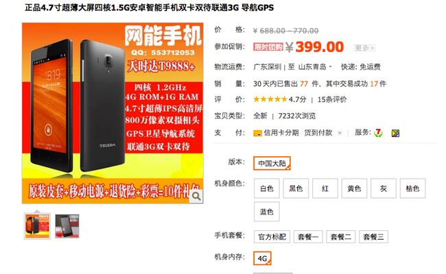 Un mix tra caduta dei prezzi dei componenti, scelte specifiche e copia palese del design ha permesso a Telsda di lanciare un convincente clone dell’Hongmi per soli 399 yuan. La compagnia cinese ha inoltre messo in vendita questo replica-phone sul proprio profilo Taobao, elecandone le specifiche: display da 4.7 pollici HD 1280×720, 1GB di RAM, processore quad-core, supporto dual-sim e fotocamera da 8 mega-pixel.