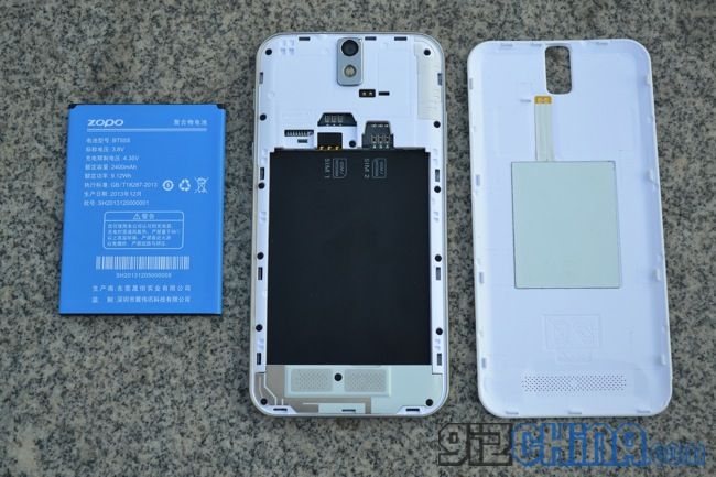 Anche per lo Zopo ZP998 è possibile rimuovere il guscio posteriore per accedere ai due slot SIM, allo slot per la microSD e alla batteria da 2400mAh (leggermente più grande).