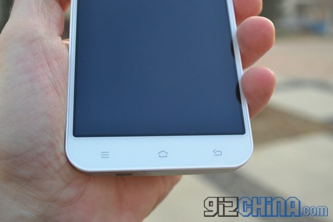 Parlando delle sezioni superiore e inferiore, troviamo tre pulsanti a sfioramento retroilluminato nella parte bassa frontale, mentre una fotocamera frontale da 5 megapixel, sensore di prossimità e speaker in quella alta.