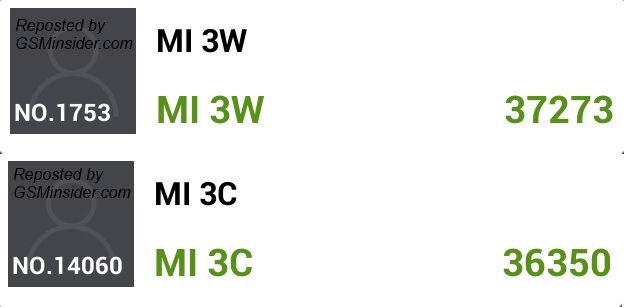 Xiaomi Mi3 Il chipset in esecuzione è quindi lo Snapdragon 800 da 2.3GHz con 2 GB di RAM con il quale, come ci si aspettava, il MI3 raggiunge 37.273 in Antutu! Il modello TD-CDMA del Mi3, ovvero quello alimentato da chipset Tegra 4, ha raggiunto invece punteggi leggermente inferiori, ovvero 36.350 punti.