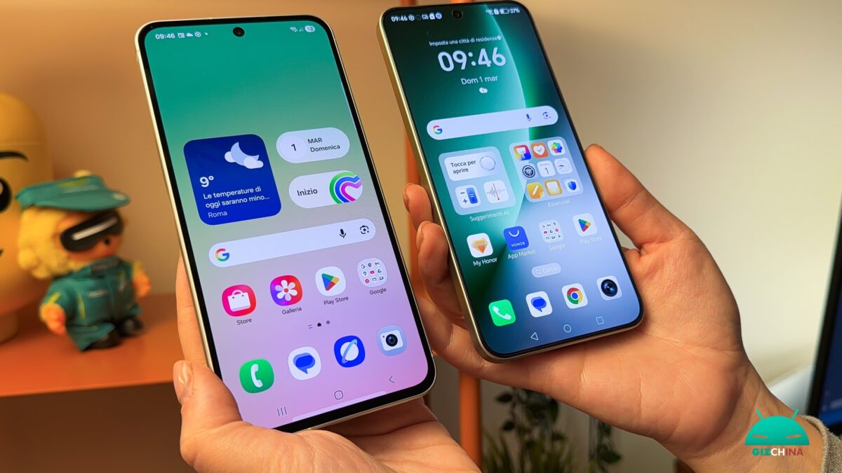 Anche sul fronte software le strade si dividono, offrendo due esperienze mature e ricchissime allo stesso tempo. Samsung porta in dote la sua collaudatissima One UI, un ecosistema ormai solido, intuitivo e ricco di personalizzazioni che non ha certo bisogno di presentazioni. HONOR, però, risponde con una mossa a sorpresa svelando MagicOS 9 basato nativamente sull’ultimissima release di Android 15. Trovare un software così aggiornato fin dal lancio su questa fascia di prezzo è una vera rarità. L’interfaccia si distingue per funzionalità smart davvero uniche, come la Magic Capsule che abbraccia la fotocamera frontale per mostrarvi controlli musicali e notifiche in tempo reale, o il comodissimo Magic Portal che vi permette di trascinare testi e immagini tra un’app e l’altra con un solo gesto.
